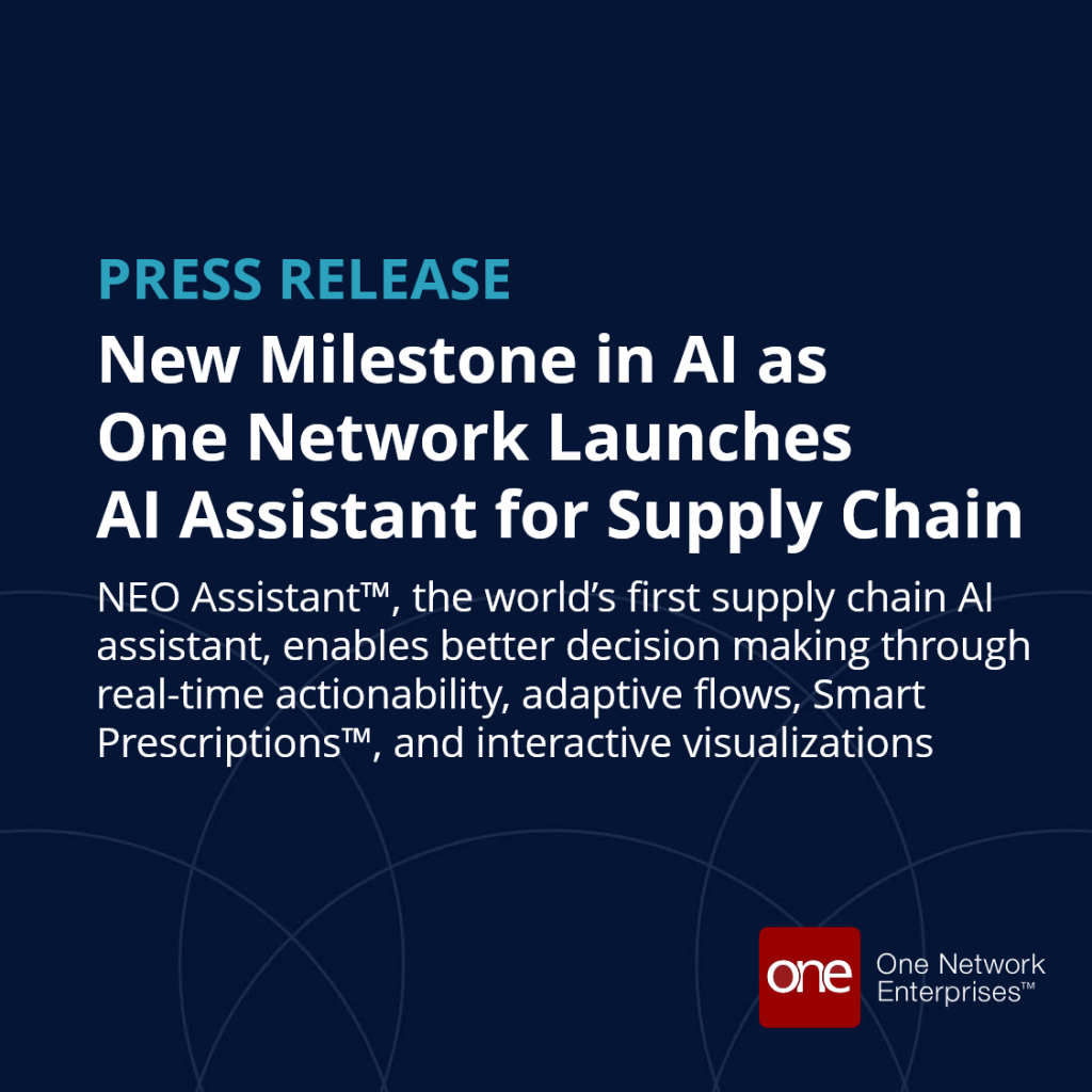 Dallas, TX – February 21, 2024 – One Network Enterprises (ONE), the leading global provider of intelligent control towers and the Digital Supply Chain Network™, is pleased to announce the beta release of NEO Assistant™, the world’s first supply chain AI assistant.